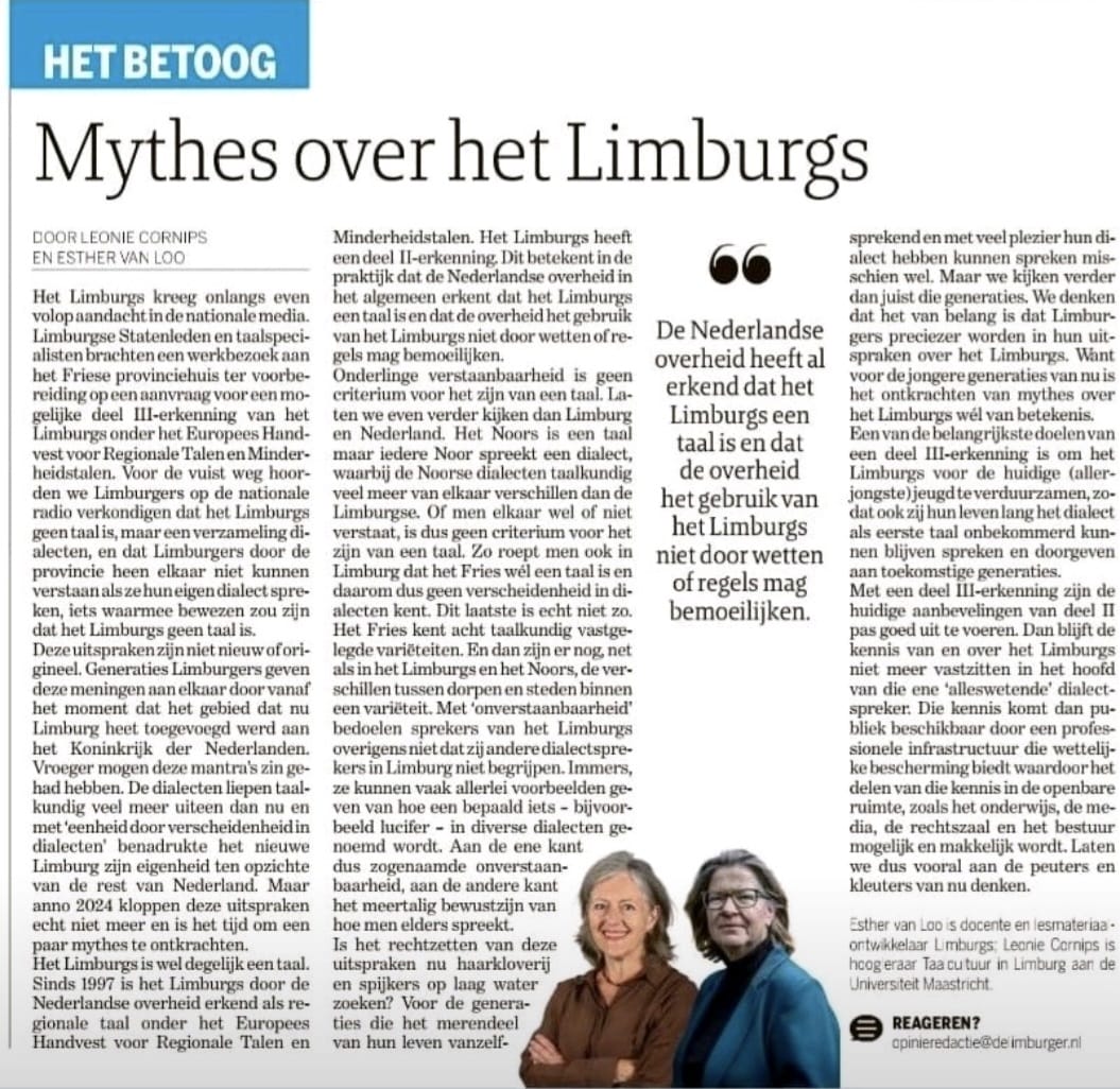 Dit betoog behandeld een aantal veel voorkomende en hardnekkige mythes over de Limburgse taal.